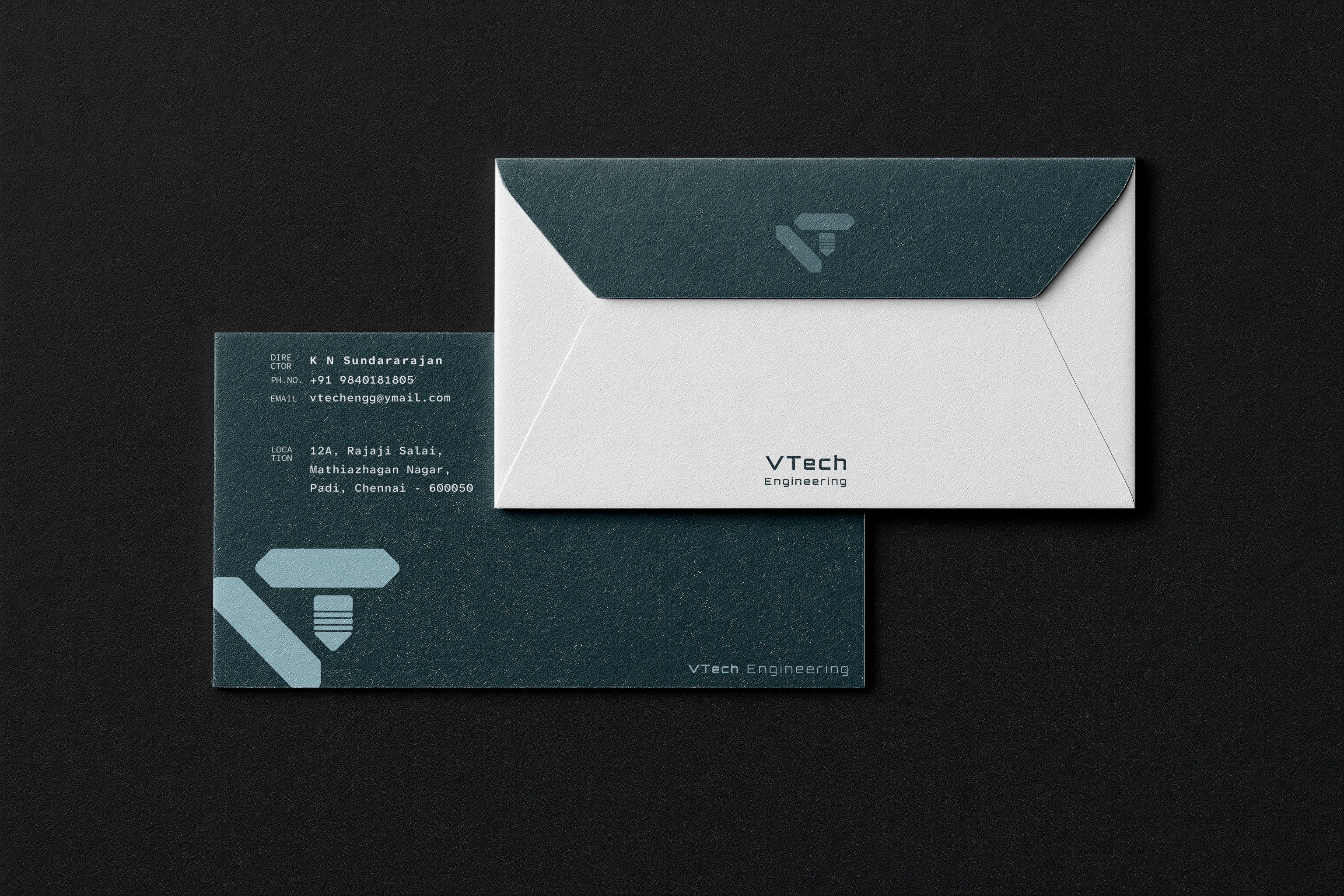 The negative space in the “V” forms a subtle checkmark, signaling validation, quality assurance, and engineering precision.
